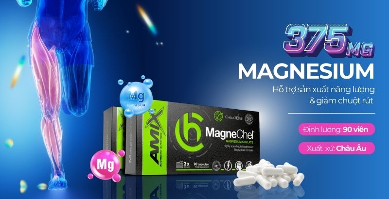Amix MagneChel cung cấp khoáng chất magie dạng viên con nhộng dễ hấp thụ và bảo quản.