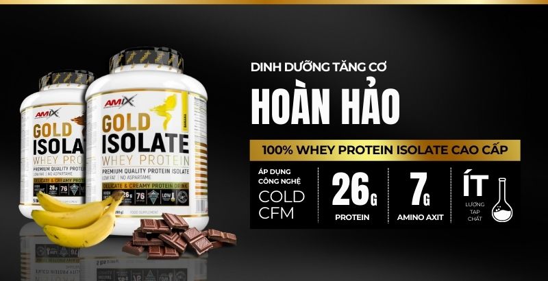 Amix Gold Whey Isolate là dòng whey protein cao cấp. Thành phần sản phẩm chỉ chứa duy nhất 1 loại whey là whey isolate, tuy nhiên hàm lượng amino axit, đặc biệt là BCAAs lại cao vượt trội so với các sản phẩm whey thủy phân (vốn có giá trị sinh học cao hơn). Điều này là do Amix Gold Isolate áp dụng công nghệ siêu lọc lạnh (Cold-CFM) giúp protein không bị biến tính. Từ đó lượng amino axit được giữ lại hầu như nguyên vẹn.